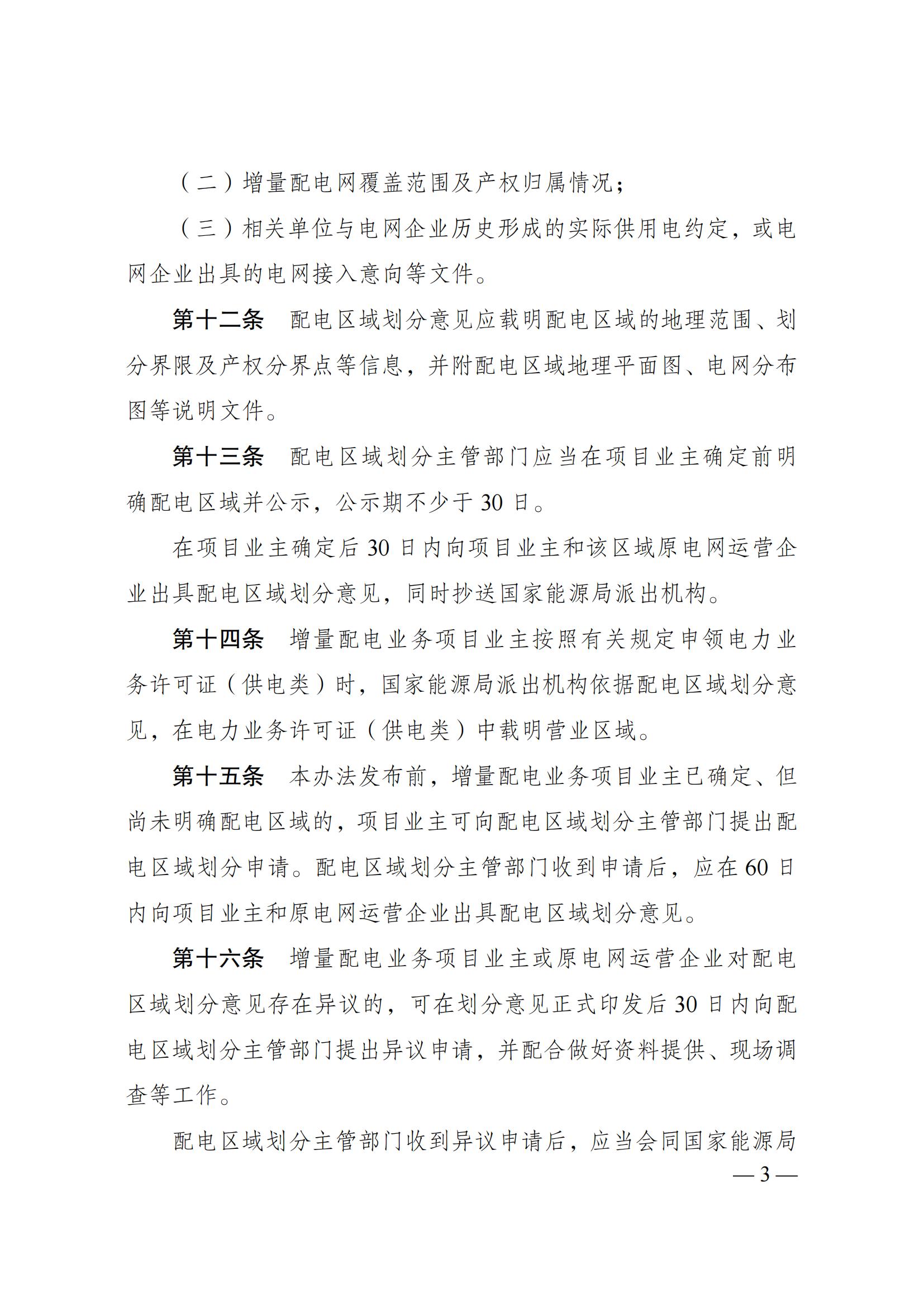 為規范增量配電業(yè)務(wù)配電區域劃分,積極穩妥推進(jìn)增量配電業(yè)務(wù)改革,國家發(fā)展改革委、國家能源局修訂了《增量配電業(yè)務(wù)配電區域劃分實(shí)施辦法》?,F印發(fā)給你們,請遵照執行?!对隽颗潆姌I(yè)務(wù)配電區域劃分實(shí)施辦法(試行)》(發(fā)改能源規〔2018〕424號)同時(shí)廢止。
