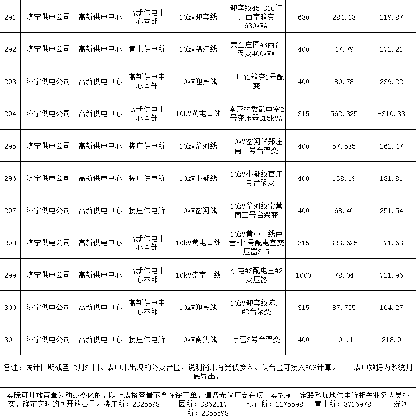 此外,表中數據為系統月底導出,實(shí)際可開(kāi)放容量為動(dòng)態(tài)變化的,以上表格容量不含在途工單,請各光伏廠(chǎng)商在項目實(shí)施前一定聯(lián)系屬地供電所相關(guān)業(yè)務(wù)人員核實(shí),確定實(shí)時(shí)的可開(kāi)放容量。