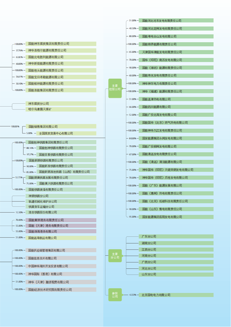 中國神華的主要運營(yíng)模式為煤炭生產(chǎn)→煤炭運輸(鐵路、港口、航運)→煤炭轉化(發(fā)電及煤化工)的一體化產(chǎn)業(yè)鏈,各分部之間存在業(yè)務(wù)往來(lái)。